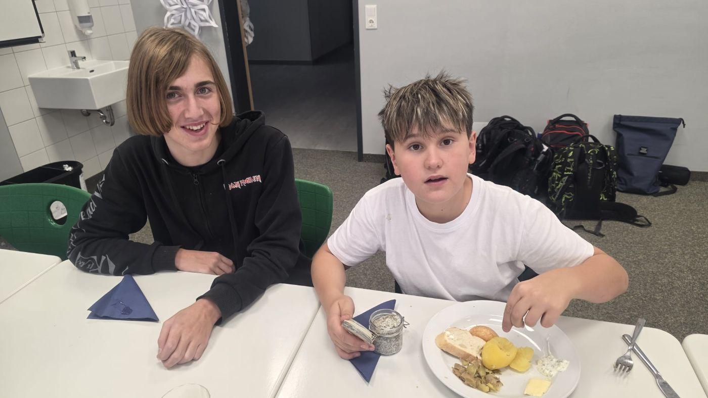 Darunter waren: Liptauer, Kräuter- und Avocado-Aufstriche. Zum Bestreuen gab es sogar selbst gemachtes Kräutersalz. Zu trinken bekamen wir Milch und Wasser. Nachdem wir alles aufgegessen hatten, ruhten wir uns in der Klasse aus😊. Das war ein unvergessliches Essen. Viel besser als die Jause, die wir uns sonst holen.
