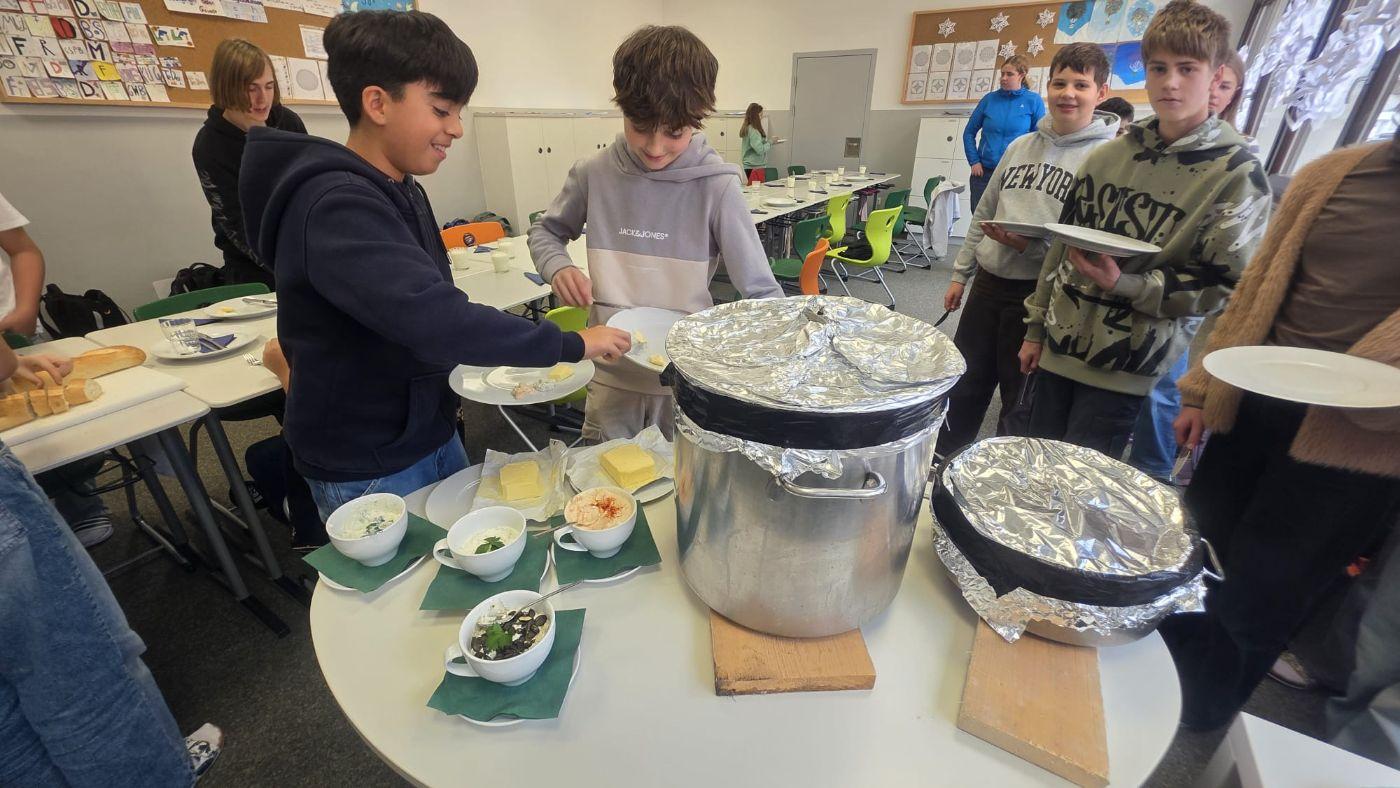 Am 20.11.2025, vor dem Nachmittagsunterricht, haben wir, alle Schüler:innen der Klasse 3b, “Schölfeler“ gegessen.