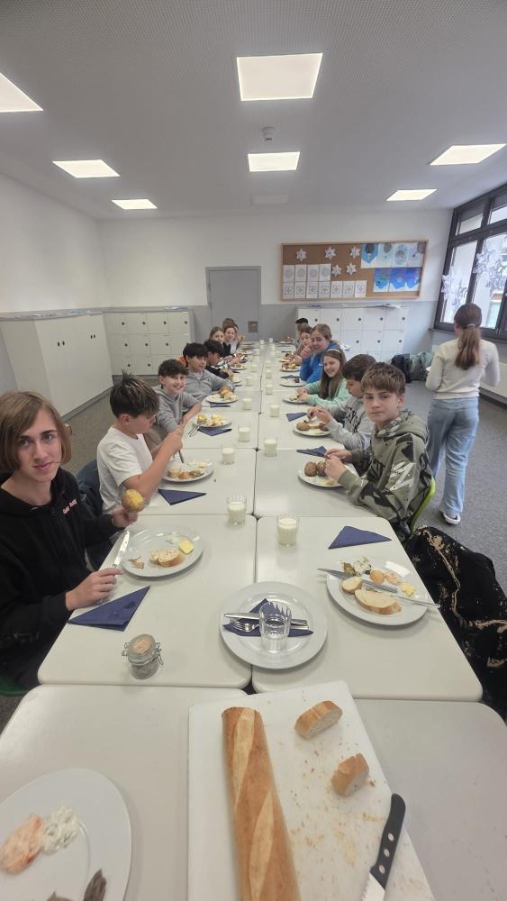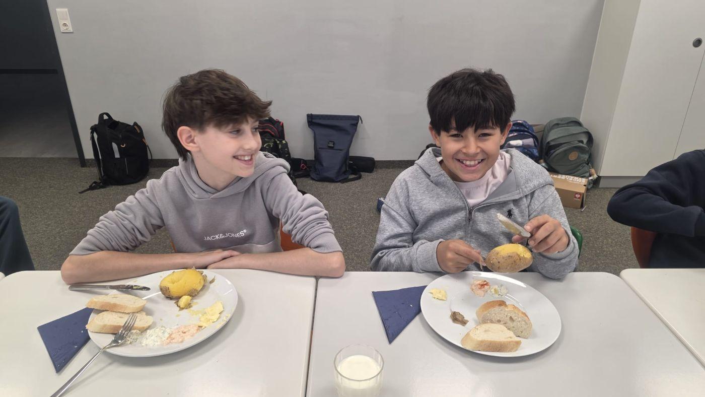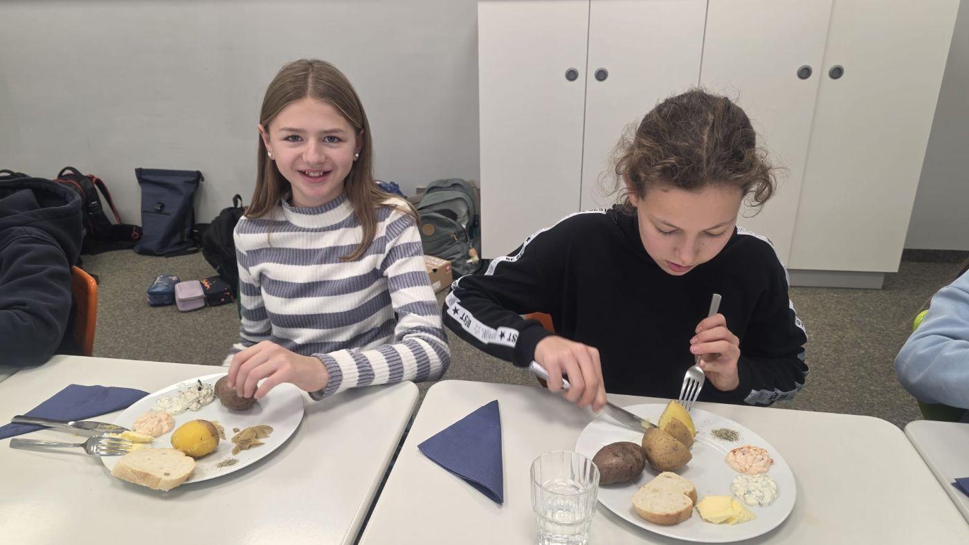 Kartoffeln – ein wahres Festessen! Es waren weiße und rote Kartoffeln. Unsere Elternvertreterin Franziska hat die Kartoffeln für uns gekocht. Im Fach Ernährung und Haushalt hat unsere Kochgruppe köstliche Aufstriche zubereitet.